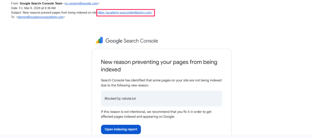 If you manage websites for clients or your own brand, you’ll eventually get an email from Google Search Console telling you that pages are being blocked by robots.txt. It sounds scary, but most of the time it’s completely normal. This guide walks you through how to check what’s going on, when to fix it, and when to leave it alone.