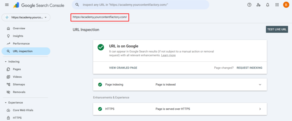 You can also use the URL Inspection tool in Search Console to check specific pages directly.