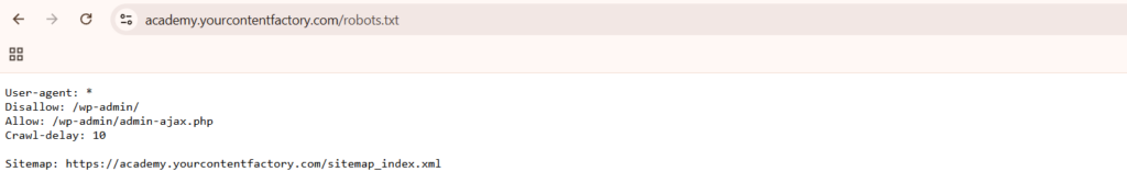 Visit https://yourdomain.com/robots.txt in your browser. You’ll see rules that look something like this: