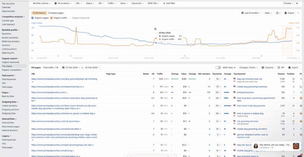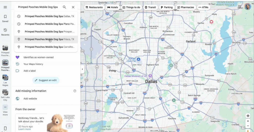 When we ran our initial audit on Primped Pooches, we identified opportunities across the board: Google Business Profile optimization, website improvements, social media presence, and local search visibility.