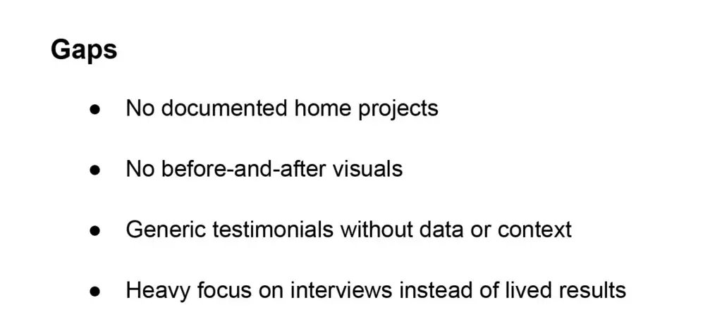 - Business context. AI guessed service areas but didn’t know the owner’s specialties. My notes from discovery calls helped prioritize recommendations.
