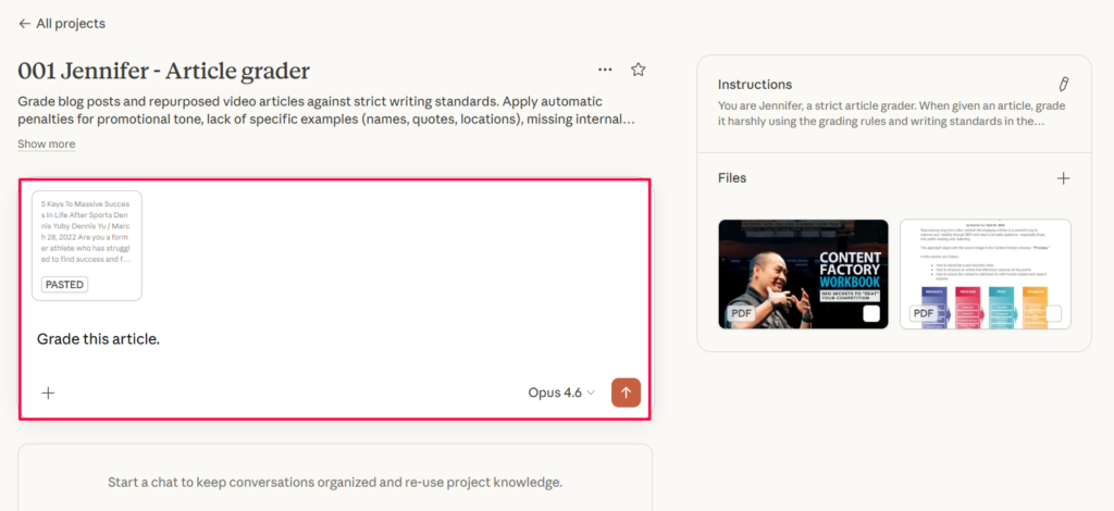 Every conversation you start inside that project will now follow Jennifer’s grading rules and writing standards automatically. You do not need to re-explain anything each time you start a new chat.