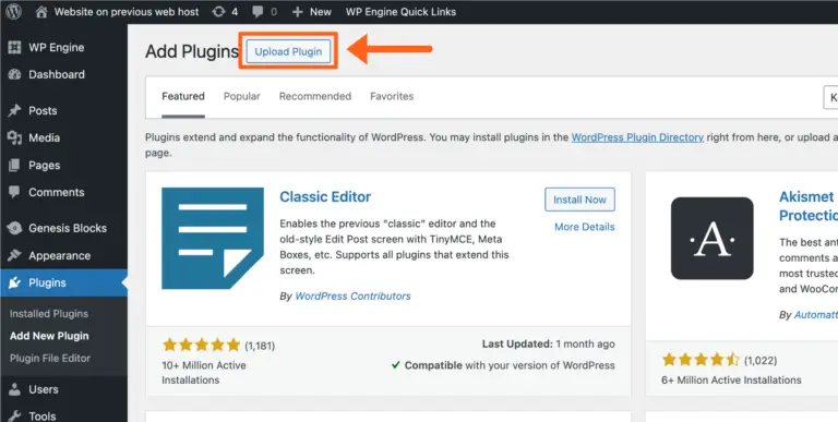 Before anything else, we will provide the Migration Plugin and the site connection information to be used with the plugin from our WPEngine account.