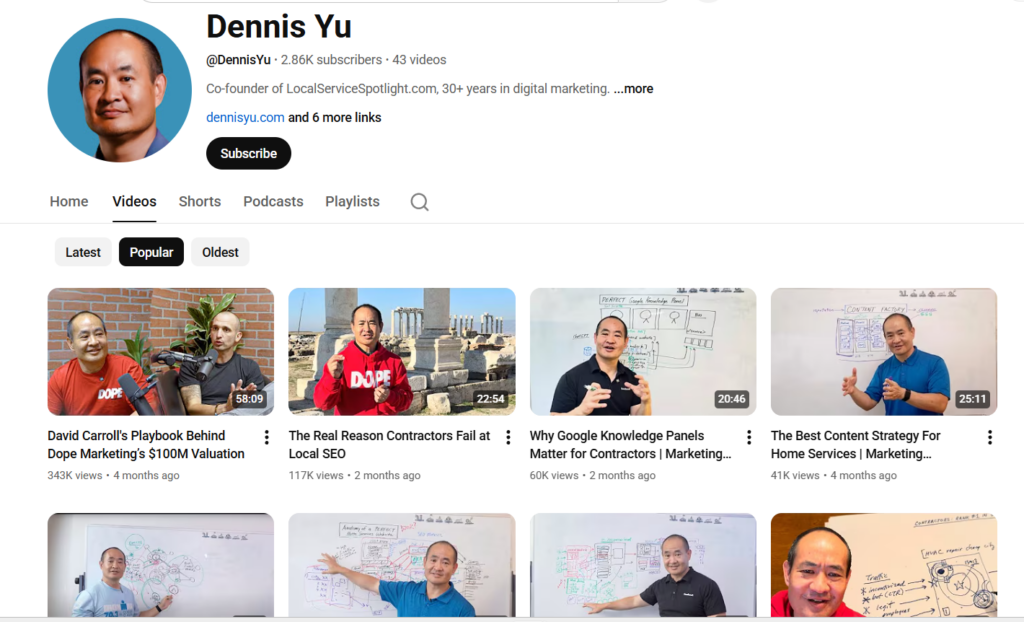 Dennis Yu’s YouTube channel